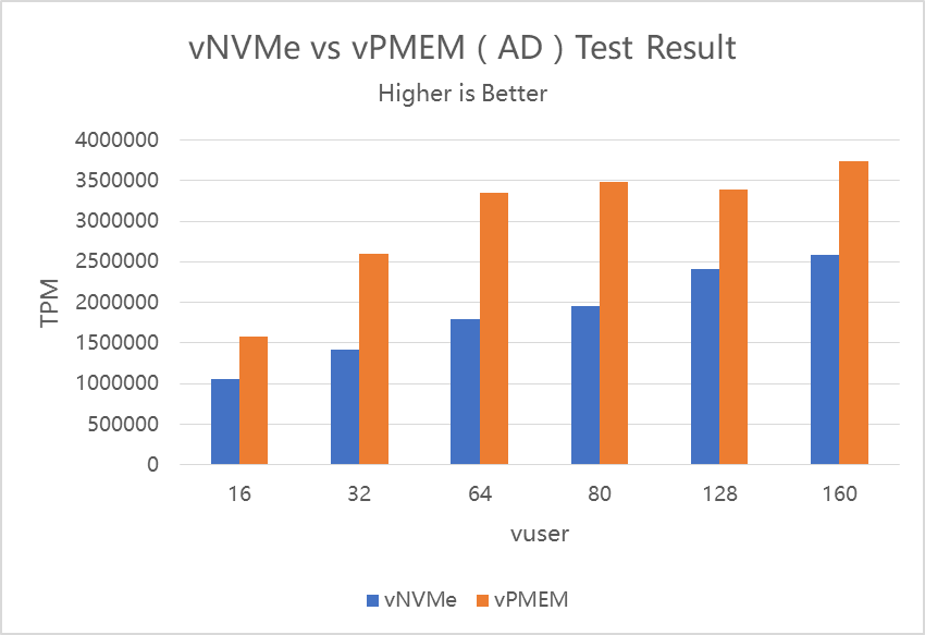 在VMware vSphere的场景下,英特尔®傲腾™持久内存AD模式高性能低延迟,有效提高数据库性能;在内存模式使用中,取得了与DRAM相近的性能收益,大幅降低内存成本。运用英特尔®傲腾™持久内存技术,可以在具有高性能大容量的虚拟环境中整合平台上的更多虚拟机,增加虚拟机密度,为更多服务及用户给予支持。